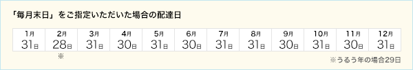 - ※うるう年の場合、2月の「毎月末日」のお届けは29日となります。